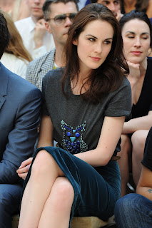 Michelle Dockery took a break from filming the third series of “Downton Abbey” to attend Burberry men’s wear show in Milan. “We’re over halfway through the filming, and we’re moving into the Twenties now — it’s very feminine and the corsets are definitely softer. we feel much more free!” said the actress.